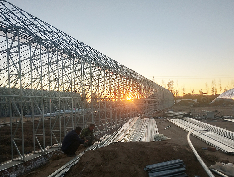 我國(guó)傳統(tǒng)的日光溫室通常采用厚墻體(通常墻體厚1~3m)方式達(dá)到合理保溫的目的。水蓄熱內(nèi)外雙保溫裝配式日光溫室摒棄了傳統(tǒng)日光溫室笨重又費(fèi)工的墻體,采用鋼結(jié)構(gòu)骨架外加保溫層、蓄熱體的方式,施工完全裝配化,省工同時(shí)提高了標(biāo)準(zhǔn)化程度,為智能控制器、小型機(jī)械的使用及溫室管理提供便利;減少占地面積,大大提高耕地利用率。與同類型的厚墻體節(jié)能溫室相比,該溫室每年可節(jié)省投資3000/畝元以上。