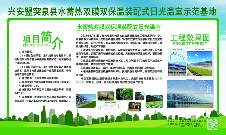 1. 通過創新示范,推廣成熟的專利集成技術及產品,總結制定本地區水蓄熱內外雙保溫裝配式日光溫室的設計及建設標準,促進蔬菜產業轉型升級。