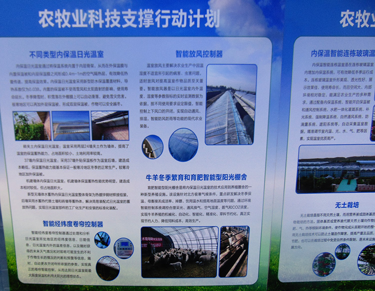 企業所研發的這款新型日光溫室,分為設施畜牧和設施日光溫室,通過將多項高新技術應用在種養殖的各個環節,達到合理用量智能管理的效果 ,節省成本的同時,也提升了產品質量和產品效益。