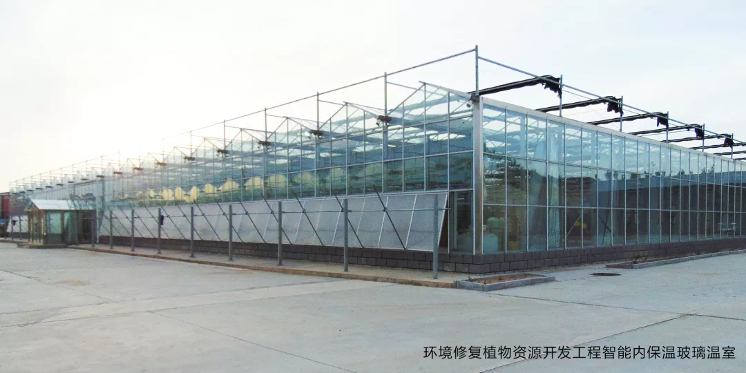 環境修復植物資源開發工程智能內保溫玻璃溫室由內蒙古中天科技有限公司(高新技術企業)規劃建設,所建智能內保溫玻璃溫室2棟,每棟各2間溫室,共4間溫室。主要作物以培育花卉、蔬菜苗、水果苗為主。智能內保溫玻璃溫室總面積3427.2㎡。溫室設頂部內保溫、立面保溫系統、外遮陽系統、內遮陰系統、濕簾-風機降溫系統、天窗通風系統、供暖系統、苗床系統、軌道式噴灌系統、照明系統、補光系統等。