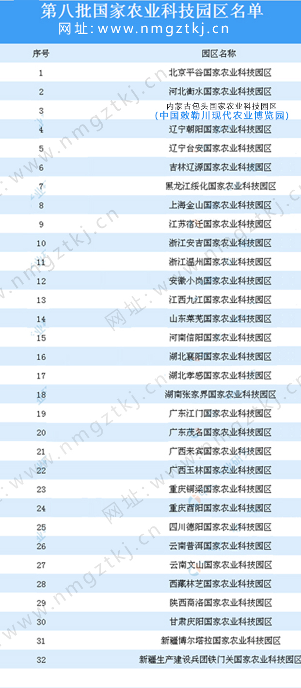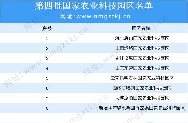 截止目前,我國已公布了8批國家農業科技園區名單,園區累計達到200多個,以下是1-8批國家農業科技園區名單匯總一覽: