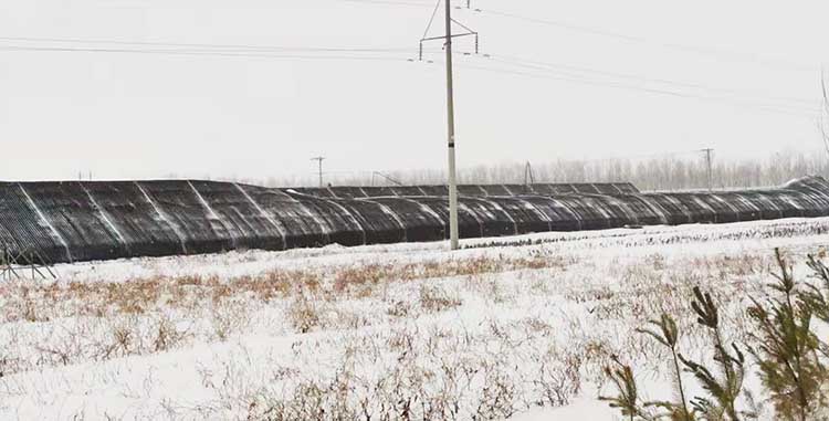 3、保溫性:雙膜單被,隔熱保溫好。晴天,外界-30℃下,棚內溫度可以達到8℃以上。冬季不加溫可以進行果菜類生產。